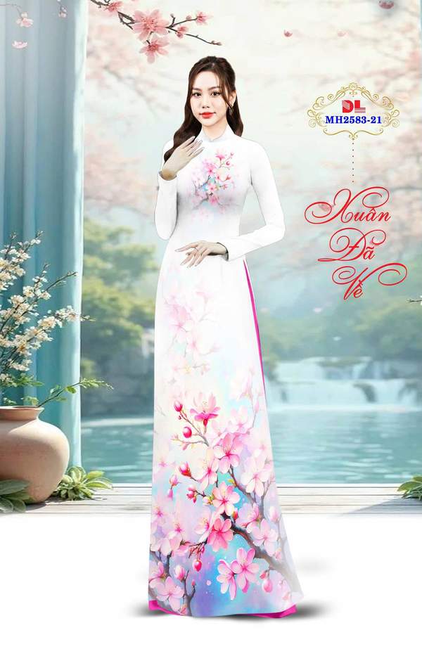 Vải Áo Dài Hoa Đào Đón Tết AD MH2583