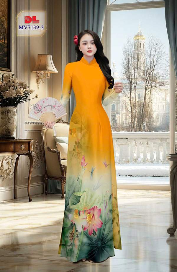 Vải Áo Dài Hoa Sen AD MV7139