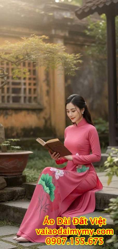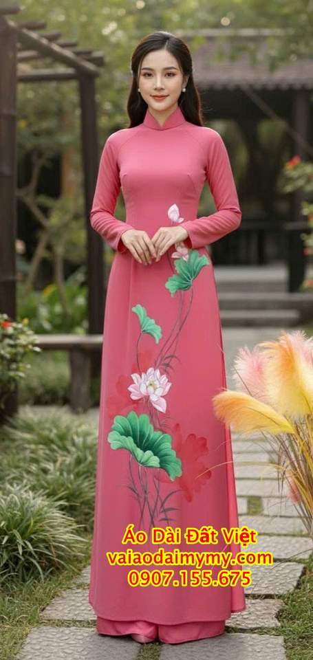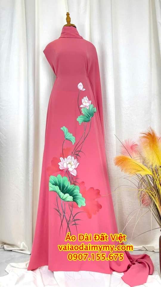 Vải Áo Dài Vẽ Tay Hoa Sen AD V51554