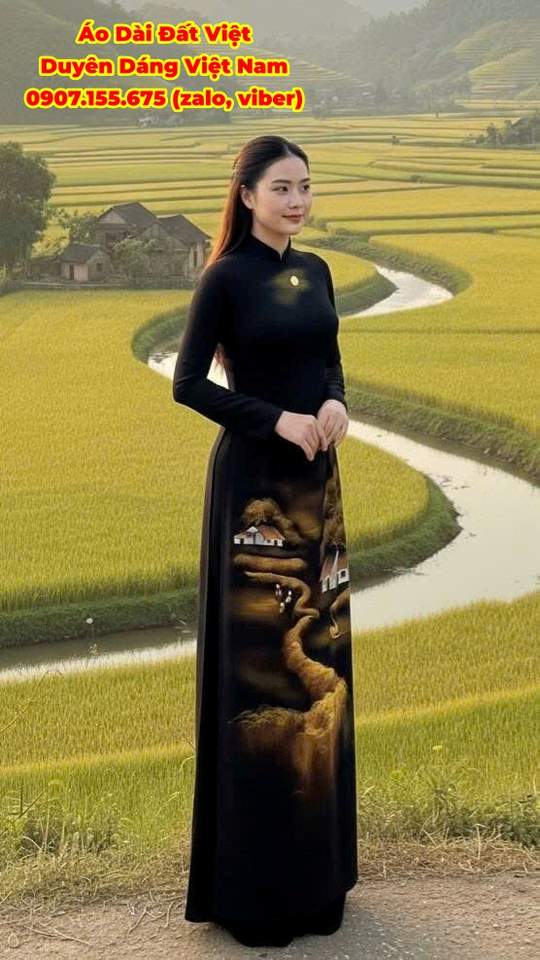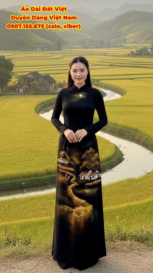 Vải Áo Dài Vẽ Tay Phong Cảnh Cao Cấp Hình AD V50956